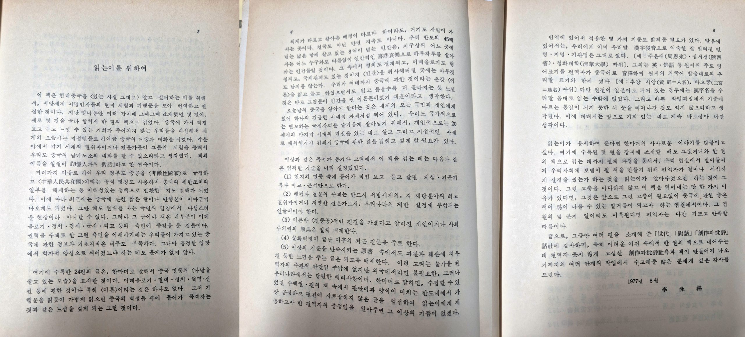 우선 리영희 선생이 1977년에 어떤 목적을 가지고 이 책을 편역했는지 서문을 통해 알아보자.