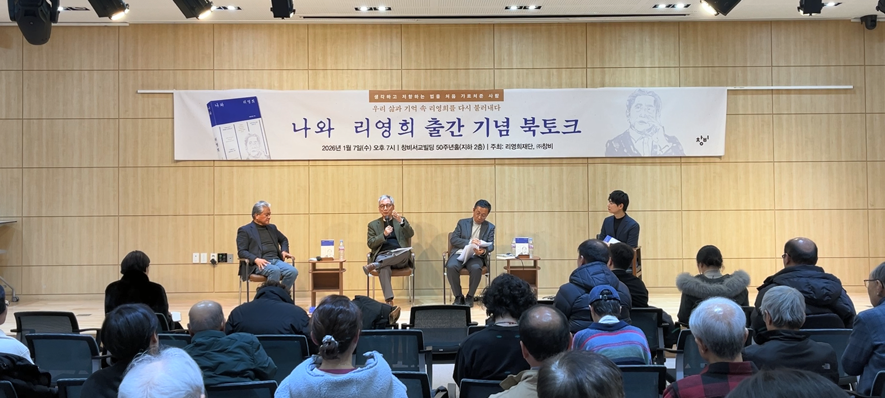 <나와 리영희>가 출간되고 한 달여가 지난 1월 7일 저녁 창비서교빌딩 50주년홀에서는 기념 북토크가 있었습니다. 이 책의 필자이기도 한 허희 문학평론가의 사회로 진행됐으며, 또 다른 필자들인 정범구 전 독일대사와 백영서 연세대 명예교수, 백승욱 중앙대 교수가 패널로 참여했습니다. 40여 명의 청중들도 대부분 행사가 끝날 때까지 자리를 지켰습니다.