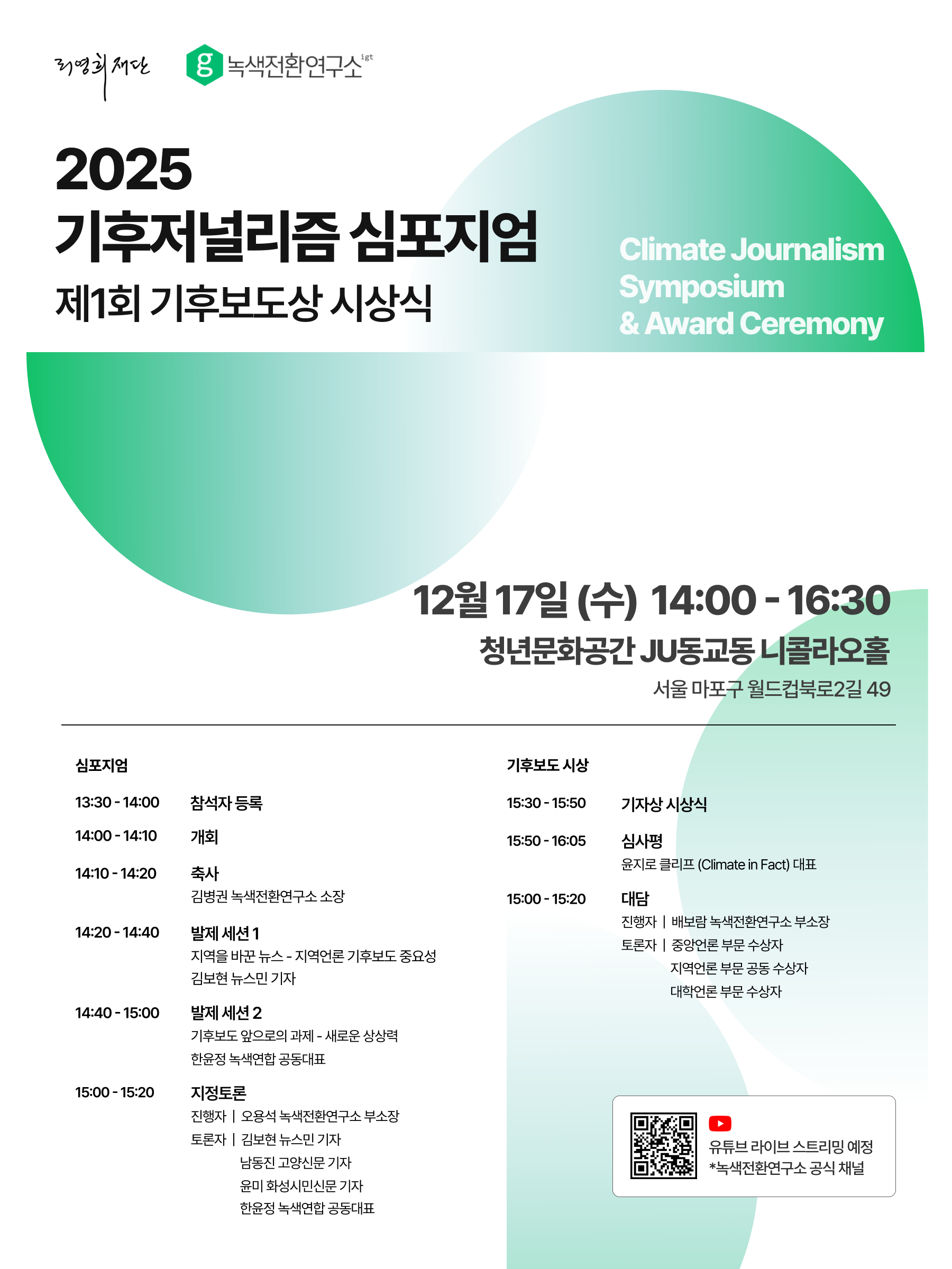 📰 2025 기후저널리즘 심포지엄 & 제1회 기후보도상 시상식