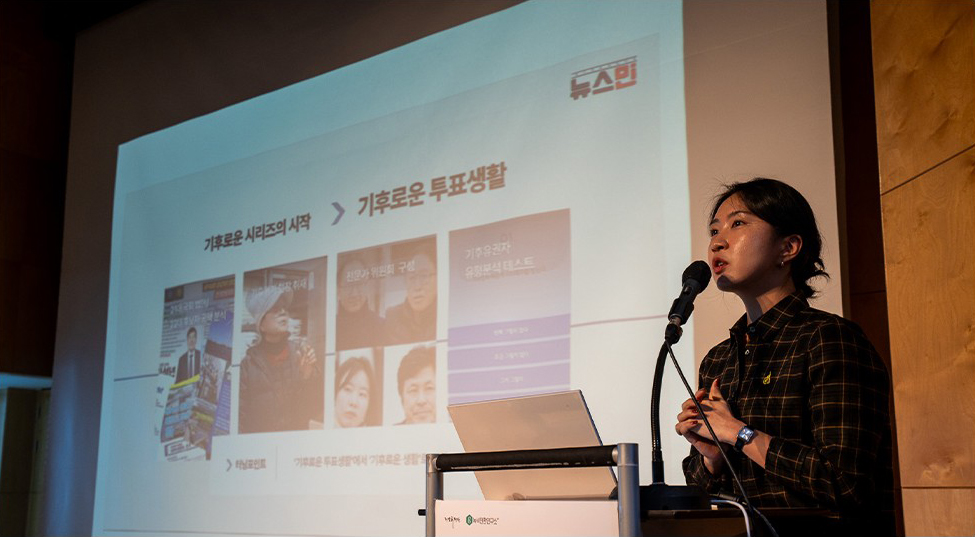 시상식에 앞서 진행된 1부 심포지엄에서는 뉴스민 김보현 기자가 ‘지역 언론 기후 보도의 중요성’을, 녹색연합 한윤정 공동대표가 ‘기후 보도 앞으로의 과제와 새로운 상상력’을 주제로 각각 발제하며 기후 저널리즘이 나아가야 할 구체적인 방향과 현장의 고민을 공유했습니다.